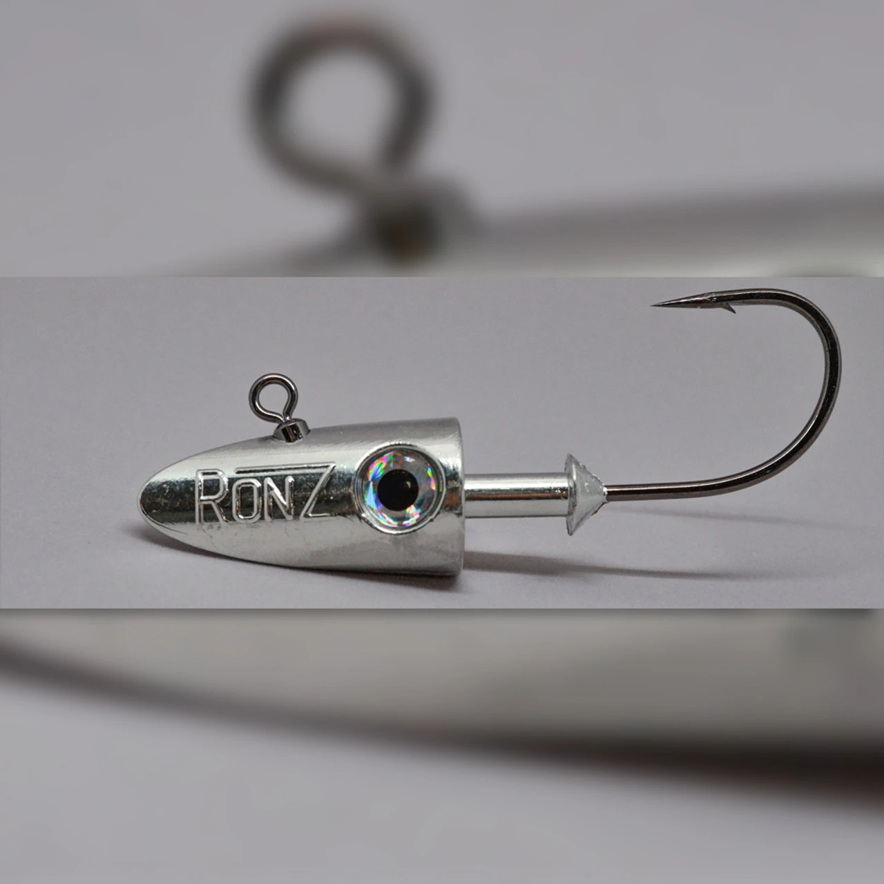 This 2.5oz tin head is matched with the 10″ tail to create the 10″ 4oz Big Game Series Medium Heavy Duty Bait. It features a 330b Spro Swivel Eye, through-wired to a fixed 11/0 Ultra Sharp Owner Ballyhoo Hook. This head is ideal for difficult to hook, larger game fish to 150lbs.