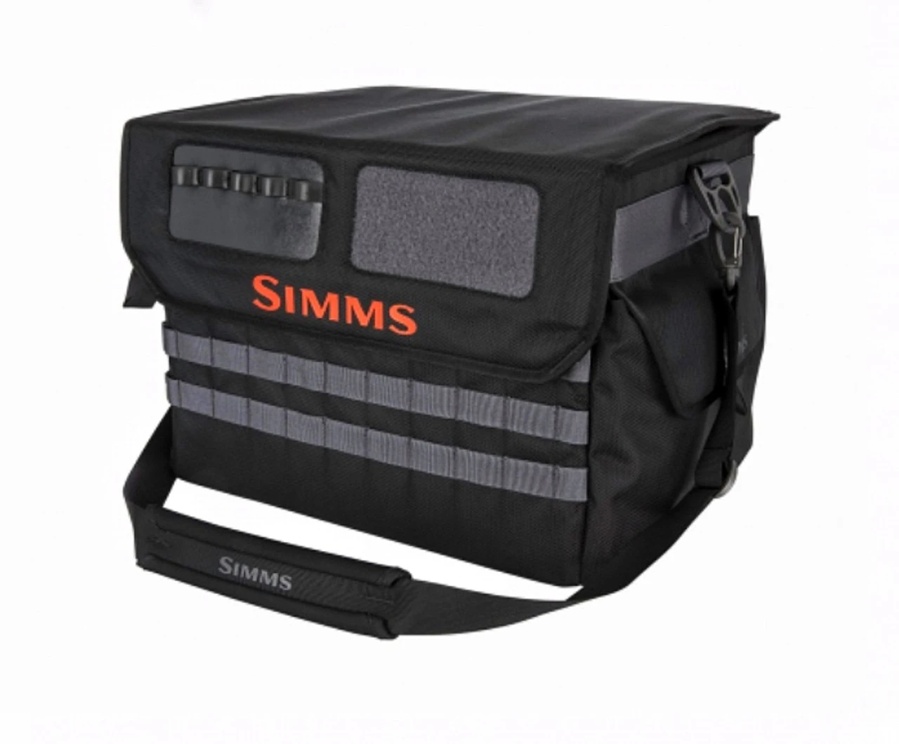 The Simms Open Water Tackle Box is fully structured and features a bomber 1680D Ballistic Polyester shell that is hook as well as water-resistant. Customizable internal dividers allows an angler to store gear in any manor. Hanging hook slots make for convenient drying and storage. The bag is fully drainable and rinseable. Tackle storage options include four 12″ x 3″ tubes and room for Plano 3600 and 3700 tackle boxes. The bag itself is 17.5″ x 13.5″ x 12″.