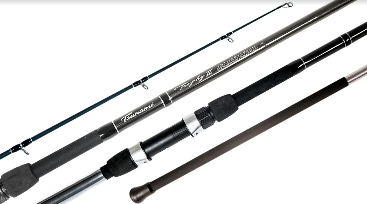 The Tsunami Trophy Surf II rods were newly redesigned to bring together performance and value. Made of a lightweight graphite, these rods have an ideal action for tossing a wide variety of lures such as plugs, tins and bait. The shrink wrapped handles show of the thin diameter of the rods, while the graphite cushioned reels eat allows for painless casting for hours. The rods are also built with tangle free guides, for hassle free casts with thin diameter braided lines.